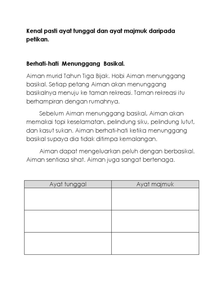 Kenal Pasti Ayat Tunggal Dan Ayat Majmuk Daripada Petikan Pdf